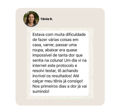 Tânia teve alívio das dores na coluna logo no início do protocolo.