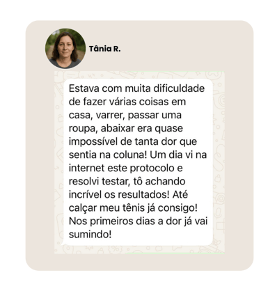 Você vai receber todo passo a passo do Protocolo Coluna Zero Dor dentro da plataforma.