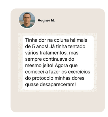 Vagner está sem dores após o protocolo coluna zero dor.